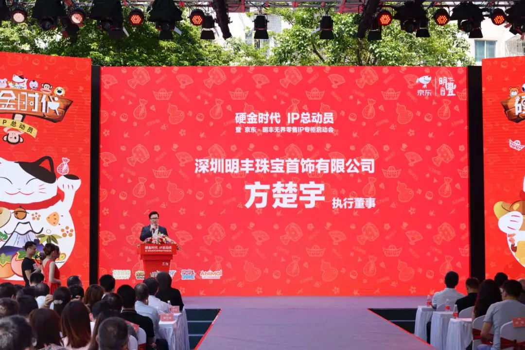 主題為《硬金時(shí)代IP總動(dòng)員》的《明豐珠寶IP專門店發(fā)布會(huì)、暨 京東明豐無(wú)界零售IP專柜啟動(dòng)會(huì)》于9月11日在金展珠寶南廣場(chǎng)盛大舉辦,此次活動(dòng)由明豐珠寶主辦,珠寶買手聯(lián)盟承辦?;顒?dòng)邀請(qǐng)到深圳市羅湖區(qū)投資推廣局局長(zhǎng)郭桂林、深圳市羅湖區(qū)經(jīng)濟(jì)促進(jìn)局副調(diào)研員戴澤樺、深圳市黃金珠寶首飾行業(yè)協(xié)會(huì)會(huì)長(zhǎng)楊紹武、香港謝瑞麟珠寶創(chuàng)始人謝瑞麟、中國(guó)青年珠寶企業(yè)家聯(lián)誼會(huì)會(huì)長(zhǎng)薛焜、深圳市時(shí)尚買手協(xié)會(huì)會(huì)長(zhǎng)苗志國(guó)、京東商城時(shí)尚事業(yè)部珠寶飾品部總經(jīng)理付俊淑、金展珠寶廣場(chǎng)董事副總經(jīng)理耿新、金展傳媒總裁許成溢、珠寶買手聯(lián)盟負(fù)責(zé)人余丹、招財(cái)貓授權(quán)國(guó)際總經(jīng)理吳嘉嶸、明豐珠寶董事長(zhǎng)劉發(fā)枝、明豐珠寶執(zhí)行董事方楚宇、以及六福珠寶、金至尊珠寶、周大生珠寶、中國(guó)珠寶、老廟珠寶、千葉珠寶、龍鳳珠寶、六桂福珠寶、明牌珠寶等眾多珠寶企業(yè)高層代表及行業(yè)同仁、銀行業(yè)朋友、媒體朋友紛紛到場(chǎng)見證。