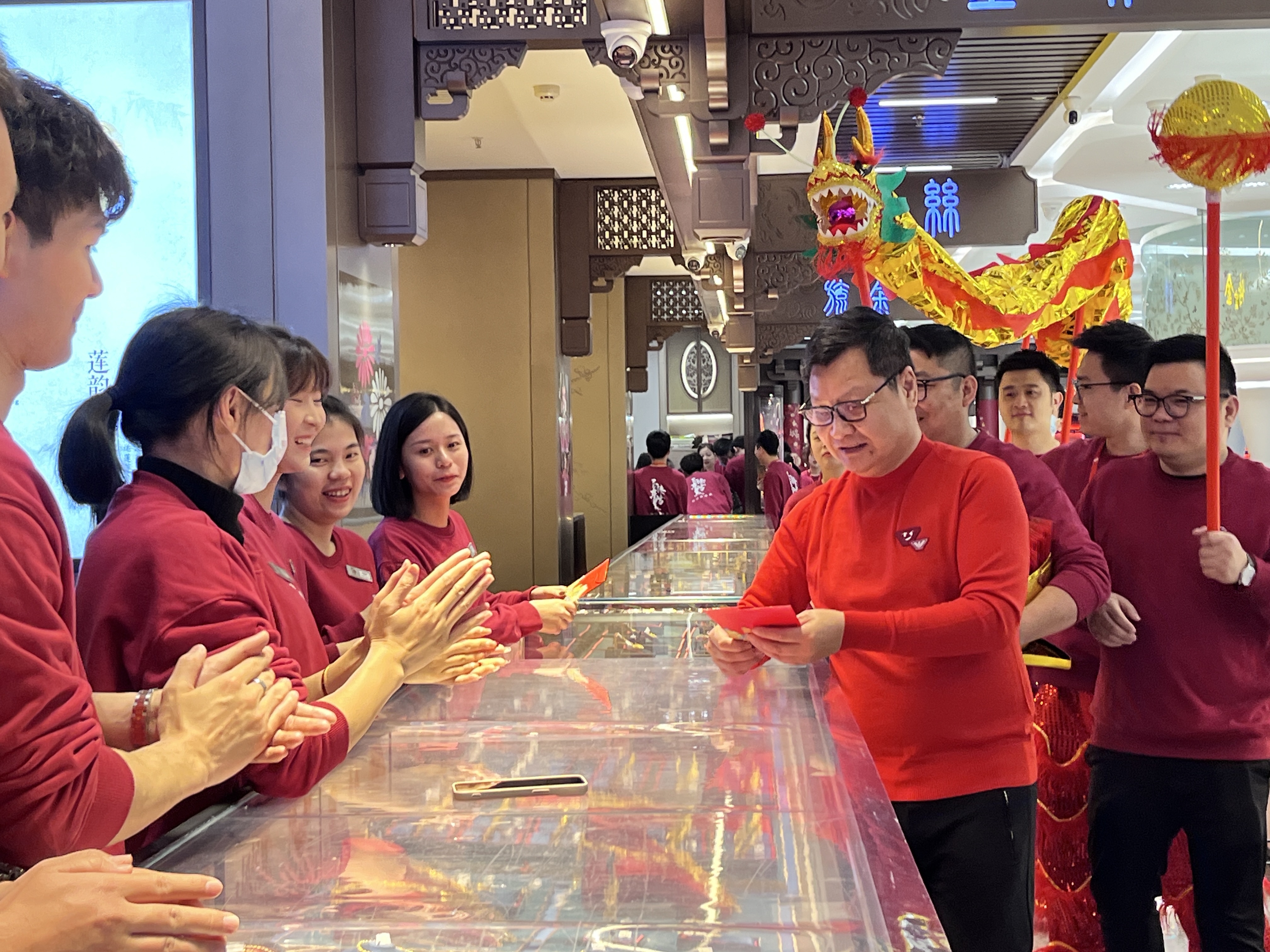 共同迎接2024龍年的第一個(gè)工作日。